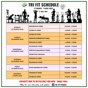 Tri-Fit Schedule for 27 Feb - 4 Mar