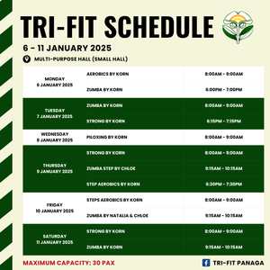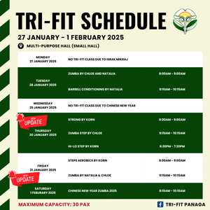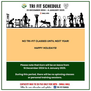 Just a heads up, there will be no tri-fit classes on Monday, 24 February 2025, because of the national day public hol...